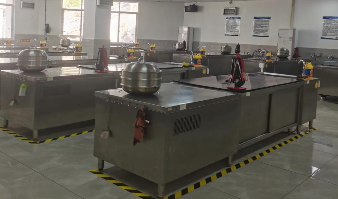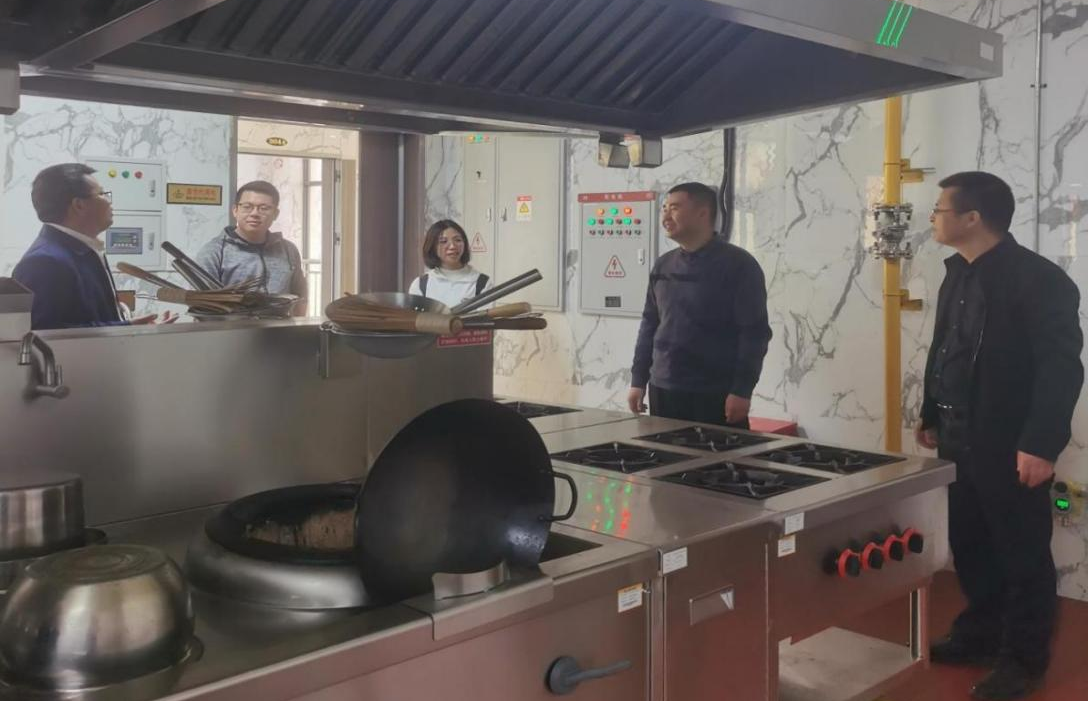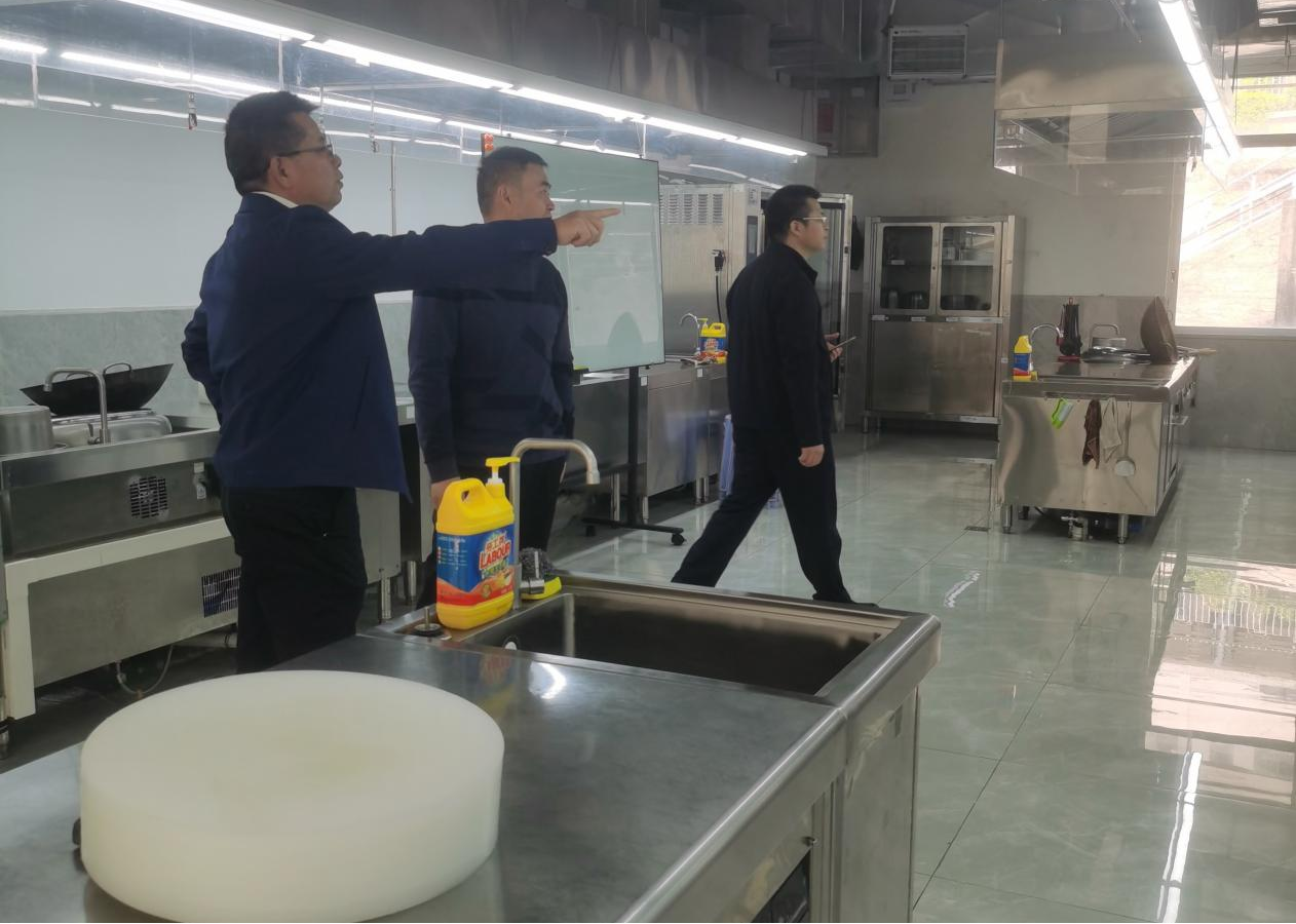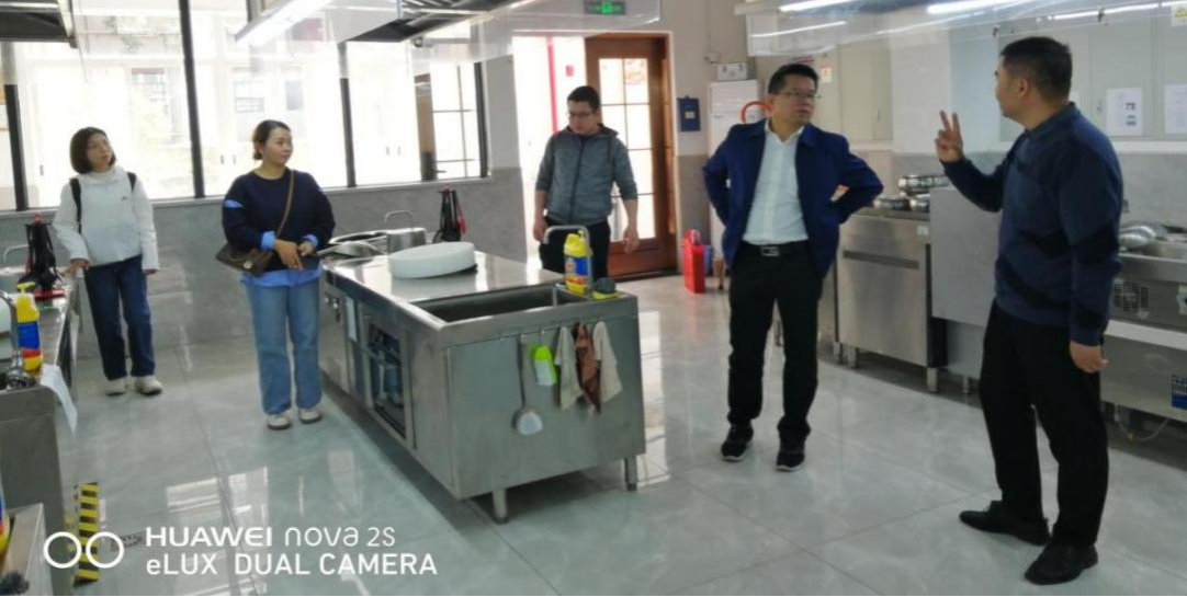 随后,黄经理热情地带领公司教师团队参观了潮菜公司的实训大楼,逐一介绍了中餐、面点、潮菜、形体、茶艺、直播等众多功能实训室。
