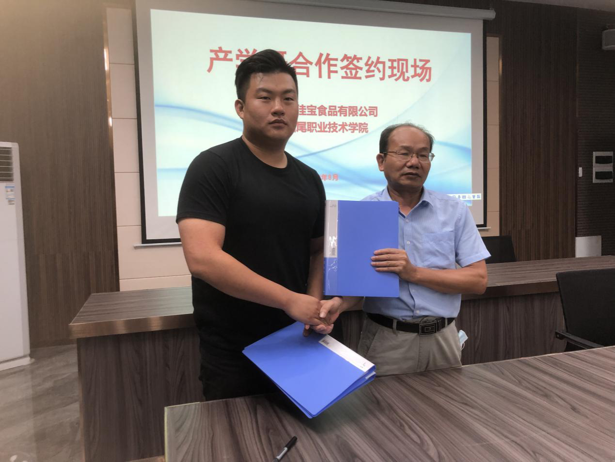 2022年8月1日下午,公司党委委员、副董事长傅凤龙教授率队前往汕尾佳宝食品有限公司(下简称“佳宝食品”)举行校企合作签约仪式。签约仪式在佳宝食品举行,双方签订了校企合作框架协议并予以授牌。公司科研处、教务处、员工处负责人,太阳成集团tyc33455cc高层次人才团队,佳宝食品副总经理林训及相关人员出席了签约仪式。