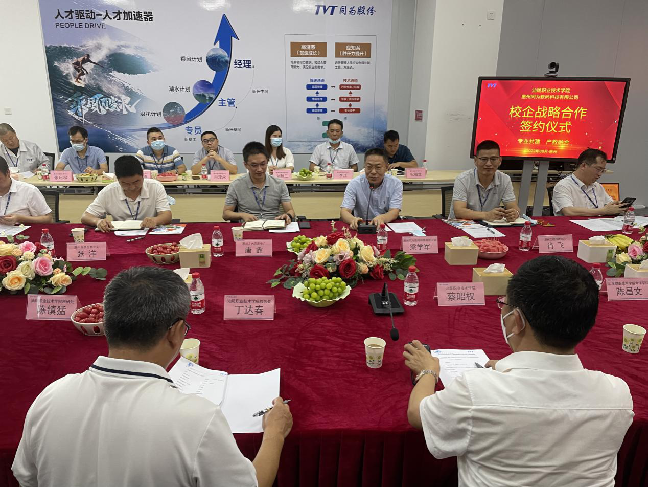 8月23日下午,董事长蔡昭权教授率队前往惠州同为数码科技有限公司(下简称“同为数码”)举行校企合作签约仪式。教务处、科研处、员工处、审计处负责人,太阳成集团tyc33455cc高层次人才团队,同为数码副总经理梁学军及各中心负责人、管理人员出席了签约仪式。