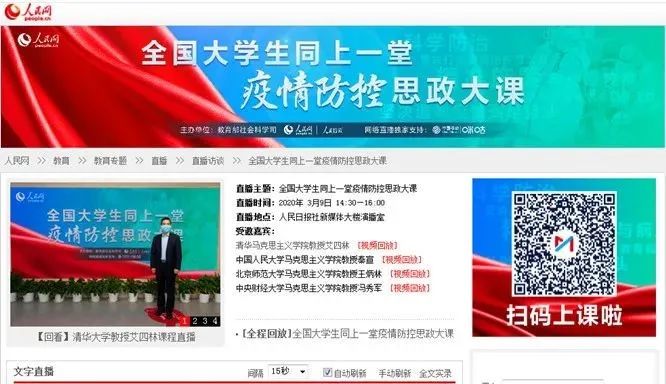 在空中课堂上,清华大学艾四林教授立足于中国抗击疫情的具体实践,引导员工深化对马克思主义基本理论的认识、拓宽了对马克思主义中国化最新成果的认识;中国人民大学秦宣教授聚焦“疫情大考告诉我们什么?”,分析了中国抗疫彰显的中国共产党领导和中国特色社会主义制度的显著优势;北京师范大学王炳林教授从我国历史上的防疫斗争历程出发,分享从磨难中奋起、化危机为转机的历史经验和智慧;中央财经大学冯秀军教授以战“疫”里的青年责任与担当为主题,深情讲述了这场疫情中勇敢逆行的年轻风景。四位专家结合思想政治理论课的教学内容,很好地解读了以习近平同志为核心的党中央关于疫情防控的决策部署,深入分析了中国抗疫彰显的中国共产党领导和中国特色社会主义制度的显著优势,动情讲述了防疫战疫一线的感人故事,并积极通过网络现场答疑,为我系学子奉上了一份特殊的“思政大餐”。