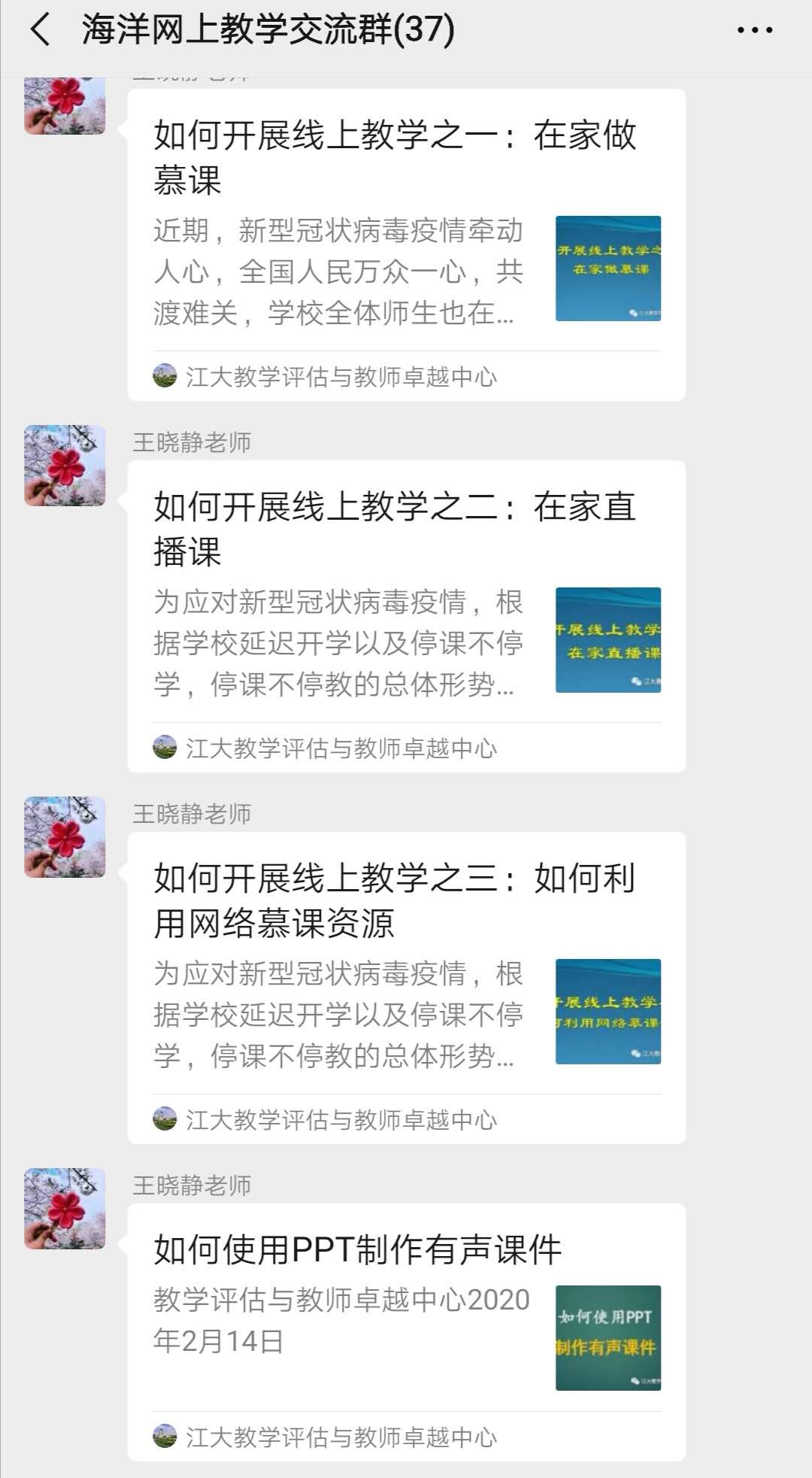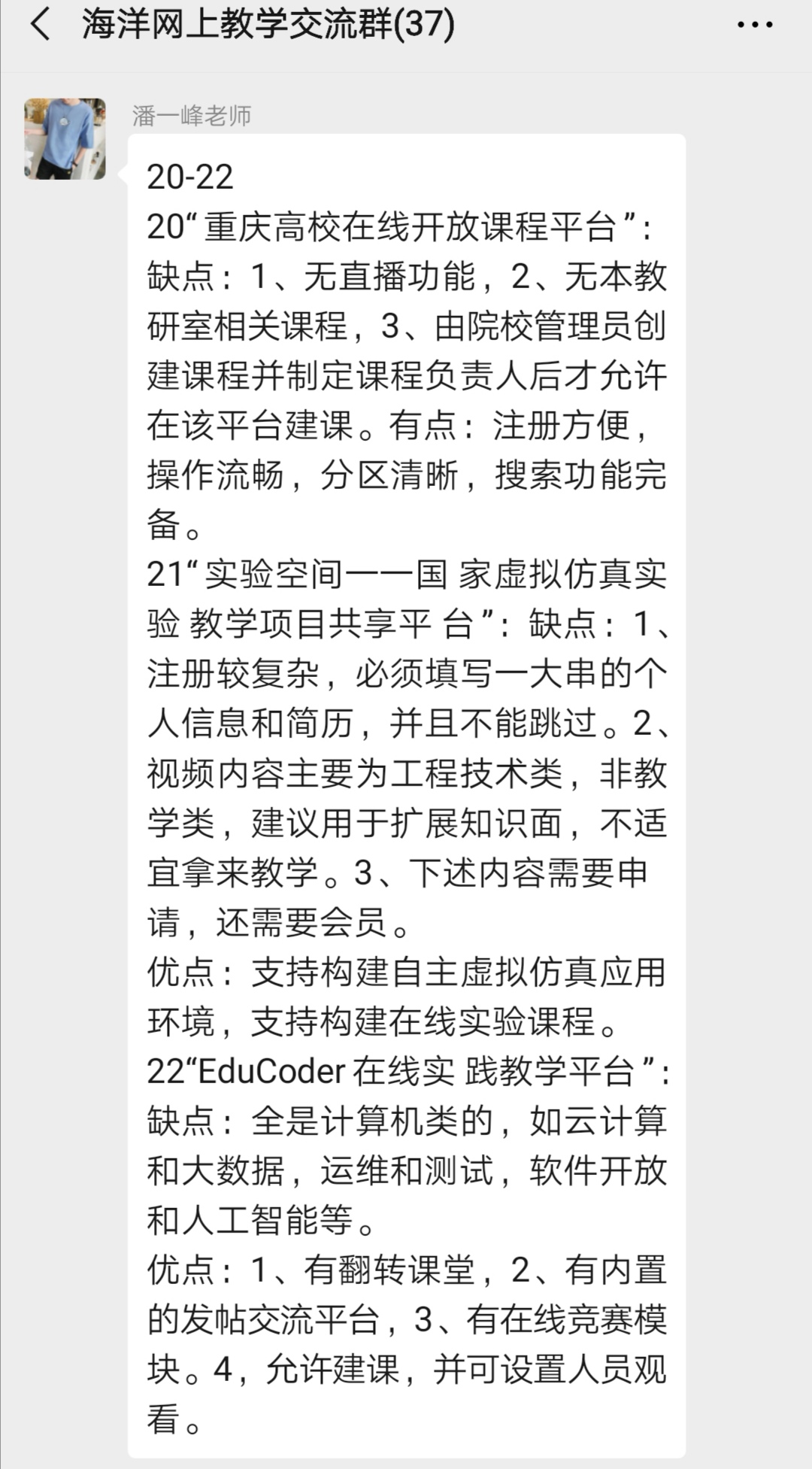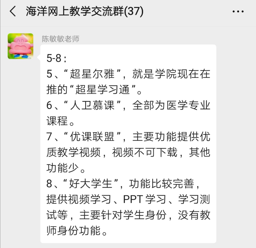 在海洋系网上教学交流群里,教学信息、经验、心得的分享从来都是豪无保留;在海洋系各课组群里,PPT共享、课程资料资源共享;海洋系的网课课程都是以课组为单位组建的。在网课的准备过程中,大家无心计较谁做多谁做少,无心计较得失,只一片赤诚期望为员工上好课,齐心协力坚守好专属于教师的教育阵地。