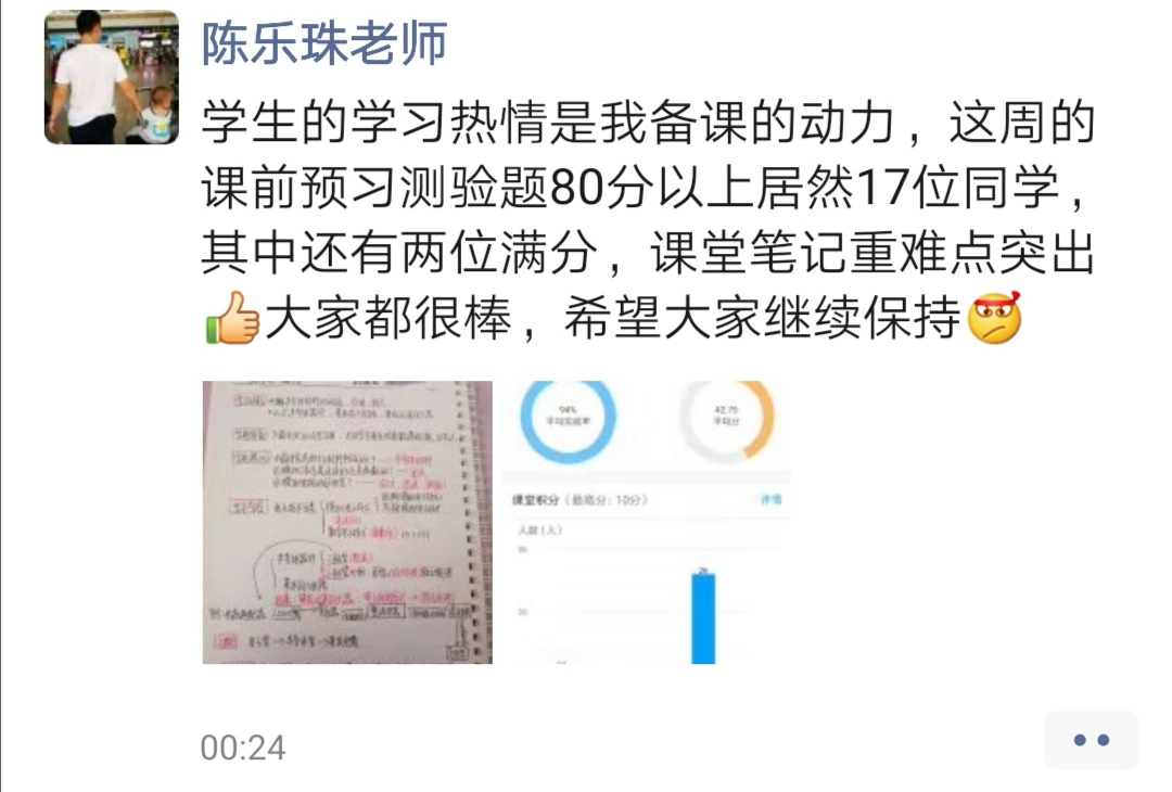 在教师之中还有这样一类:“双师家庭”,疫情之下教员工活新模式:两夫妻轮番上完网课后陪孩子上网课。但这并不影响身在双师家庭的陈敏敏老师成为本次网课的各平台的“技术大牛”;并不影响林家铸老师、陈惠静老师、黄道燚老师课堂的优质高效。