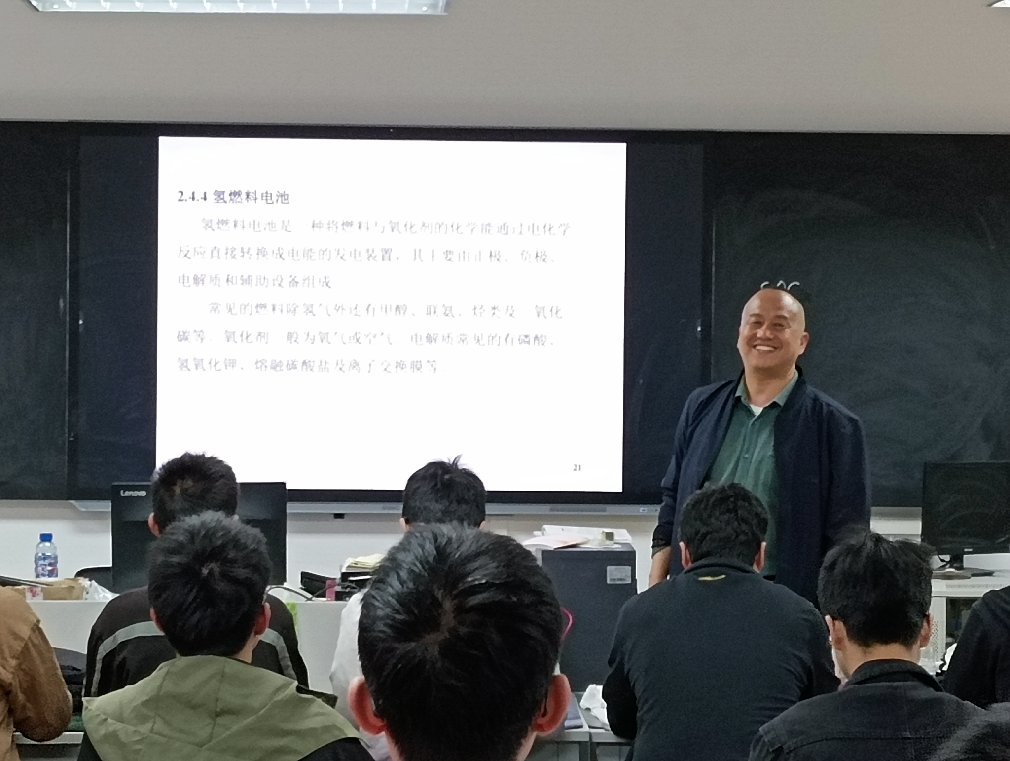 本次公开课由电气自动化技术专业教师甘永江博士主讲,讲授内容为新能源汽车电池及管理系统。甘老师以生活中常见的电动汽车电池、电动摩托车电池为例引入本次课程主讲内容,详细地介绍了电动汽车所使用电池的类型、特点、优缺点及充放电过程。整个教学过程中,甘博士旁征博引,深入浅出,教态自然,声音洪亮,举例贴近生活,语言风趣幽默,板书与课件切换娴熟,教导与启发无缝衔接,显示了深厚的教学功底与充分的课前准备。