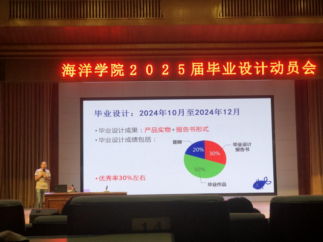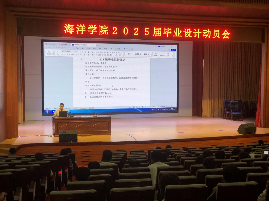2024年9月27日,公司在A区求真楼801、学术报告厅召开了毕业设计开题动员会,海洋公司党总支书记、经理陈昌文,毕业设计指导教师及223级、232级员工参加。
