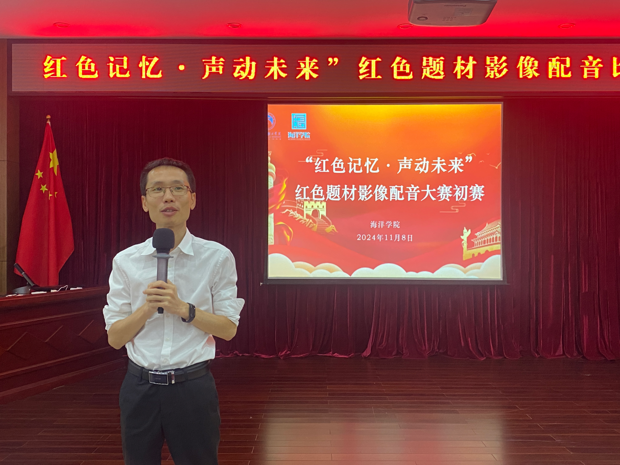 为深入学习贯彻习近平新时代中国特色社会主义思想,推动党史学习教育走深走实,教育引导广大青年员工铭记革命历史,传承红色基因,2024年11月8日晚,太阳成集团tyc33455cc在科学楼四楼会议室举办了“红色记忆·声动未来”第二届红色题材影像配音比赛初赛。公司党总支副书记、副经理陈倚重老师,团委书记陈金雄老师,辅导员卓子梅老师、黄士库老师、陈伟嘉老师担任比赛评委,十二组参赛选手同台竞技。