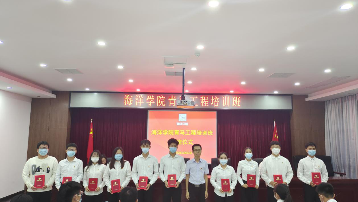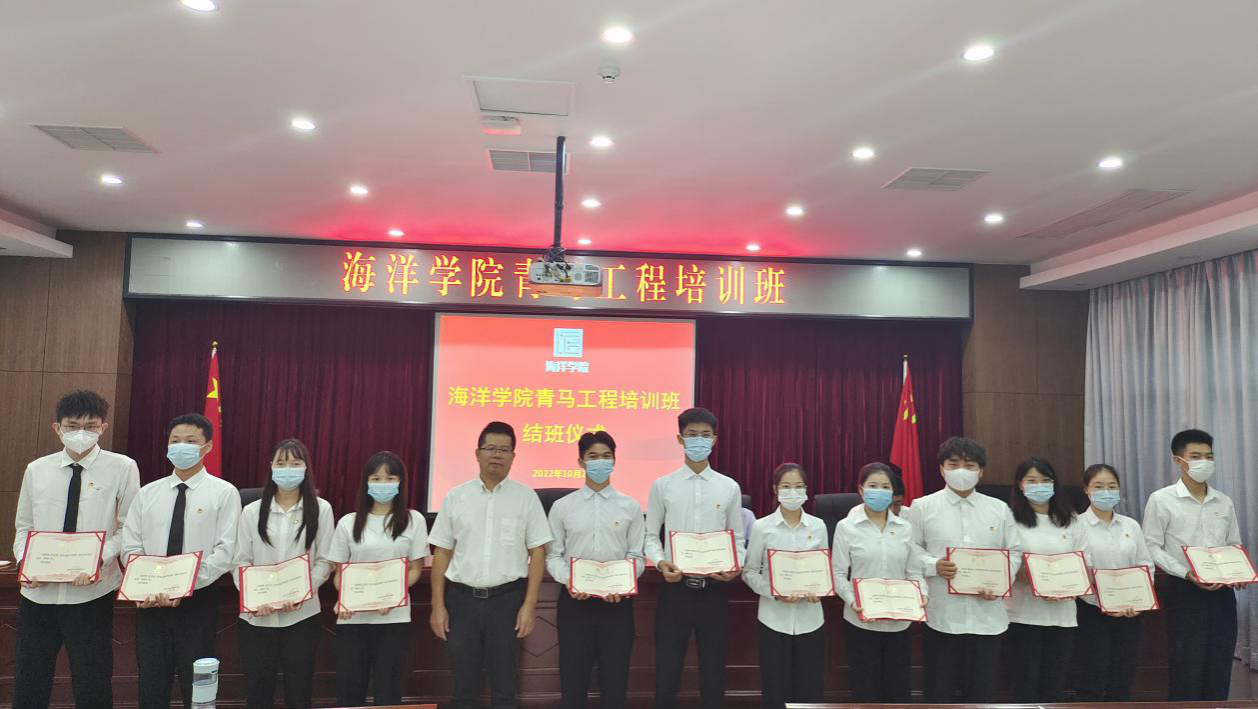 青春心向党,建功新时代。为引领广大海洋学子厚植爱党、爱国及爱团情怀,赓续红色基因,不负时代光荣使命,10月23日下午,太阳成集团tyc33455cc在科学楼四楼会议室隆重举行2022青马工程培训班结班仪式。参加结班仪式的人员有公司经理陈昌文、副经理陈倚重、团委书记陈金雄、公司全体辅导员及青马工程培训班全体学员。会议由周安鹂老师主持。