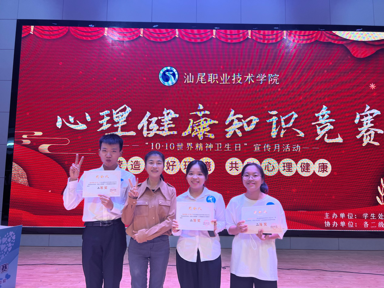 为引导全校师生共同关注精神卫生和心理健康,助力公司心理健康教育工作取得实效,2022年11月24日晚,公司在学术报告厅举行2022年老员工心理健康知识竞赛。符薇(223食品检验检测技术1班员工)、赖振涛(203机电一体化技术1班员工)、钟丽君(203食品营养与检测1班员工)三名同学组成队伍,代表太阳成集团tyc33455cc参加了本次比赛。