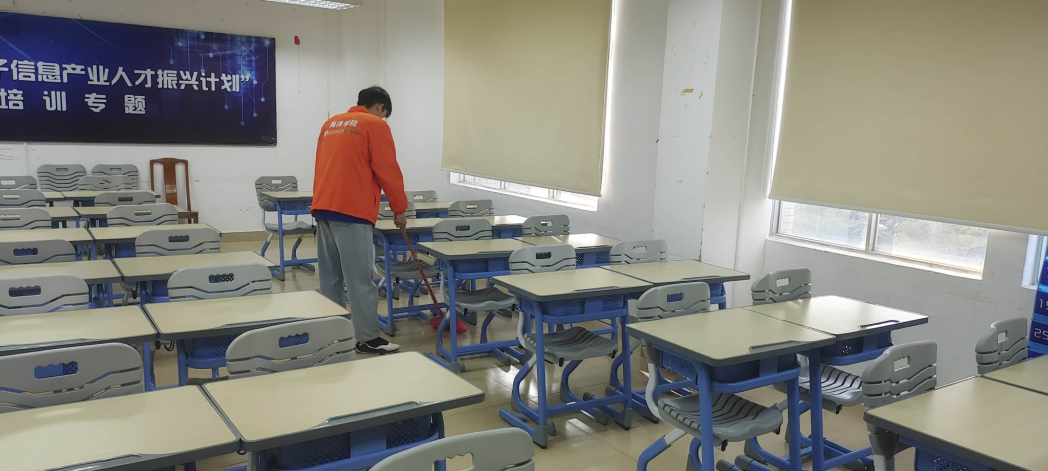 今年3月5日,是第60个学雷锋纪念日。为深入学习习近平新时代中国特色社会主义思想,进一步传承和弘扬雷锋精神,同时也为给同学们营造良好的学习环境,公司于3月5日组织员工志愿者在求真楼8楼开展教室卫生大清洁活动。