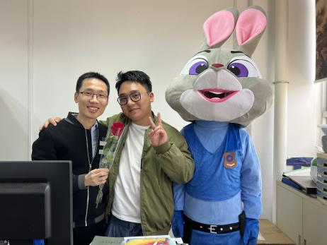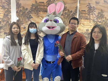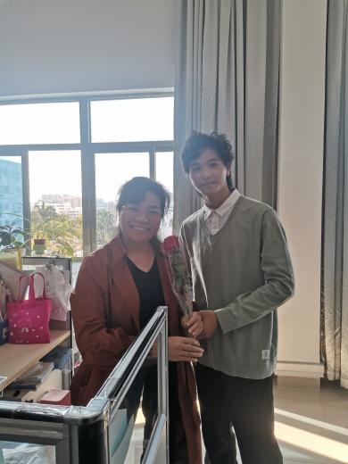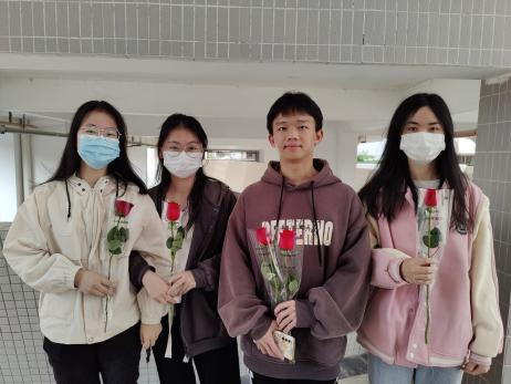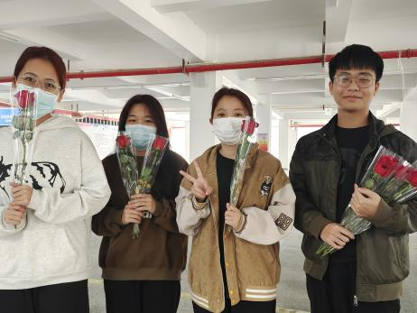 公司“送你一朵小红花”活动于2023年3月7日女生节当天进行。活动开始前,公司早早定制了196朵玫瑰花,并于3月6日晚布置了女生节活动现场。3月7日早晨,送花小队便开始行动了,由员工会成员和男班委们在求真楼805办公室领取花束,秘密送到各位女老师和女同学手中,也给公司男老师送了花,让其把祝福带给他们的家属。