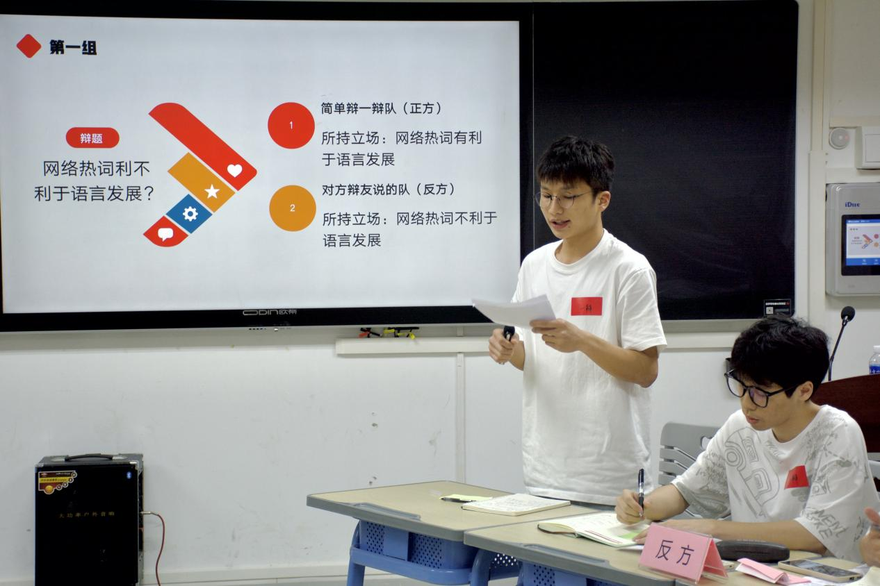 在第一场比赛中,简单辩一辩队和对方辩友说的队就“网络热词是否利于语言发展”这一辩题展开了激烈的讨论。辩场上,简单辩一辩队指出在互联网的迅速发展下,使用网络热词能够更生动形象地促进沟通交流;而对方辩友说的队则就网络热词使用范围的局限以及不利影响发表观点。双方各持观点又各自举证,可谓精彩万分。最终对方辩友说的队技高一筹,赢得了本场比赛的胜利。