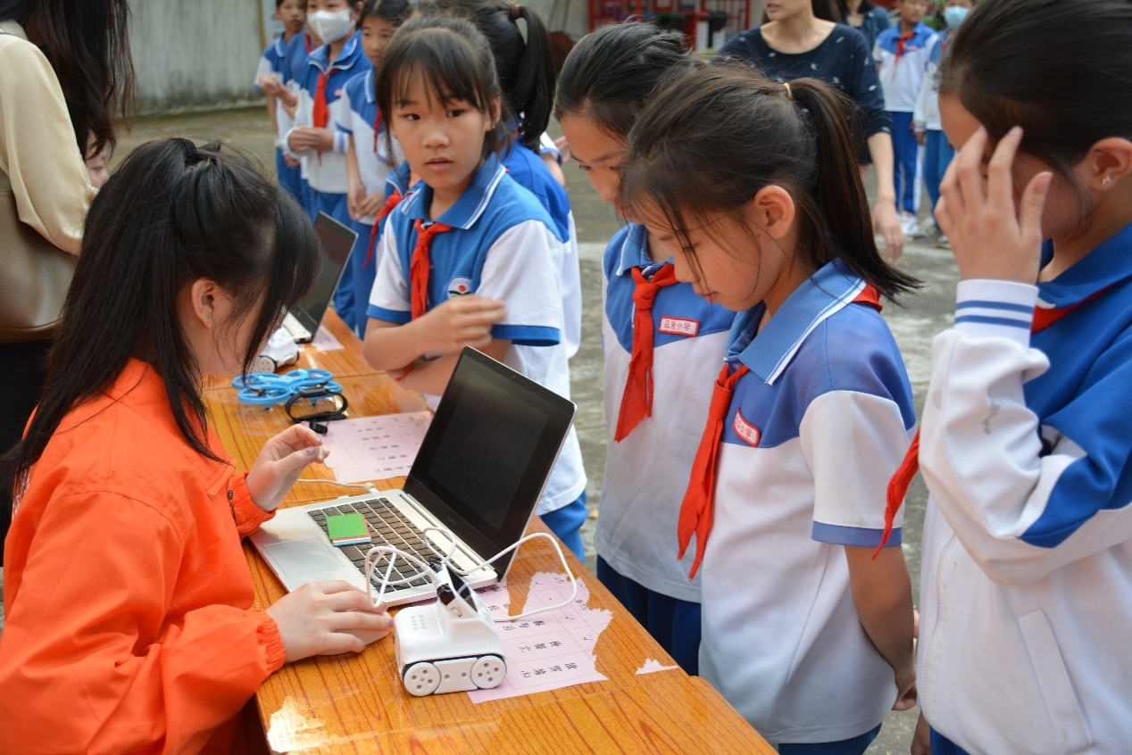 活动中,员工们在公司的安排和老师的组织下分班级有秩序地参观、体验和零距离感受科技的无穷魅力。活动内容共涉及三部分:机器人表演、无人机展示及实操体验不同科技展品。同学们在志愿者的带领下感悟了像“太阳能发电板”“手摇磁感应发电板”“手摇发电机”“追光向日葵”等科技展品所蕴含的科学原理,并亲自操作体验。高科技手摇“起舞”的无人机把整个活动推向了高潮,志愿者们从无人机的分类、应用等方面向员工们进行了科普讲解,并通过操控无人机完成起飞、降落、避障等操作让同学们感受着科技的神奇和魅力,欢笑声、惊呼声充满校园。