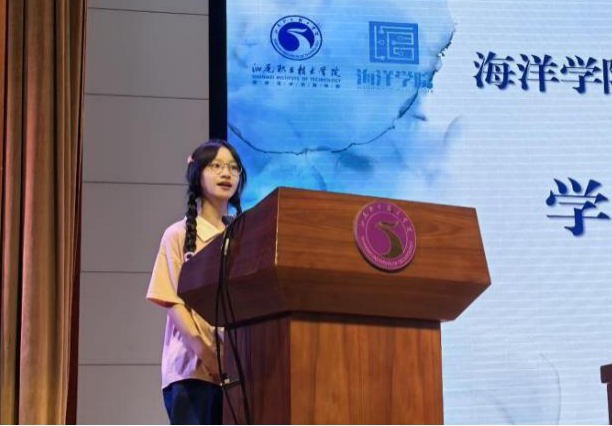 新生代表243电气自动化技术3班邬宜容同学分享了入校以来的感悟,表达了对老员工活的期待与憧憬,表示会珍惜大学时光、努力学习,勇于探索,不断提高自我。