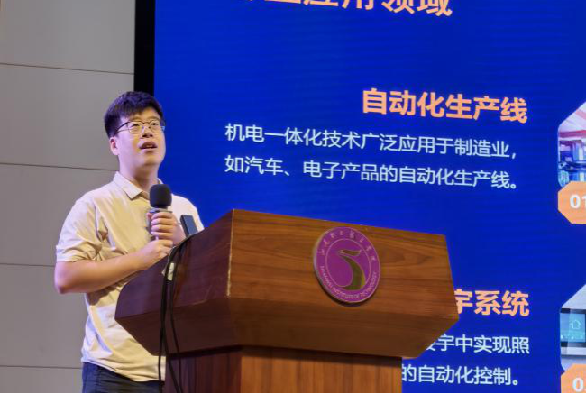 在专业介绍环节,机电一体化技术专业主任刘计良、电气自动化技术专业主任王有坤、电子信息工程技术专业主任黄道燚、物联网应用技术专业主任王艳、食品检验检测技术专业主任王程程分别重点介绍专业就业方向、教师团队、核心课程、专业平台(包括技能竞赛、职业技能证书)等内容,带领同学们更好地了解自己专业情况,也帮助同学们进一步明确了大学的奋斗目标。
