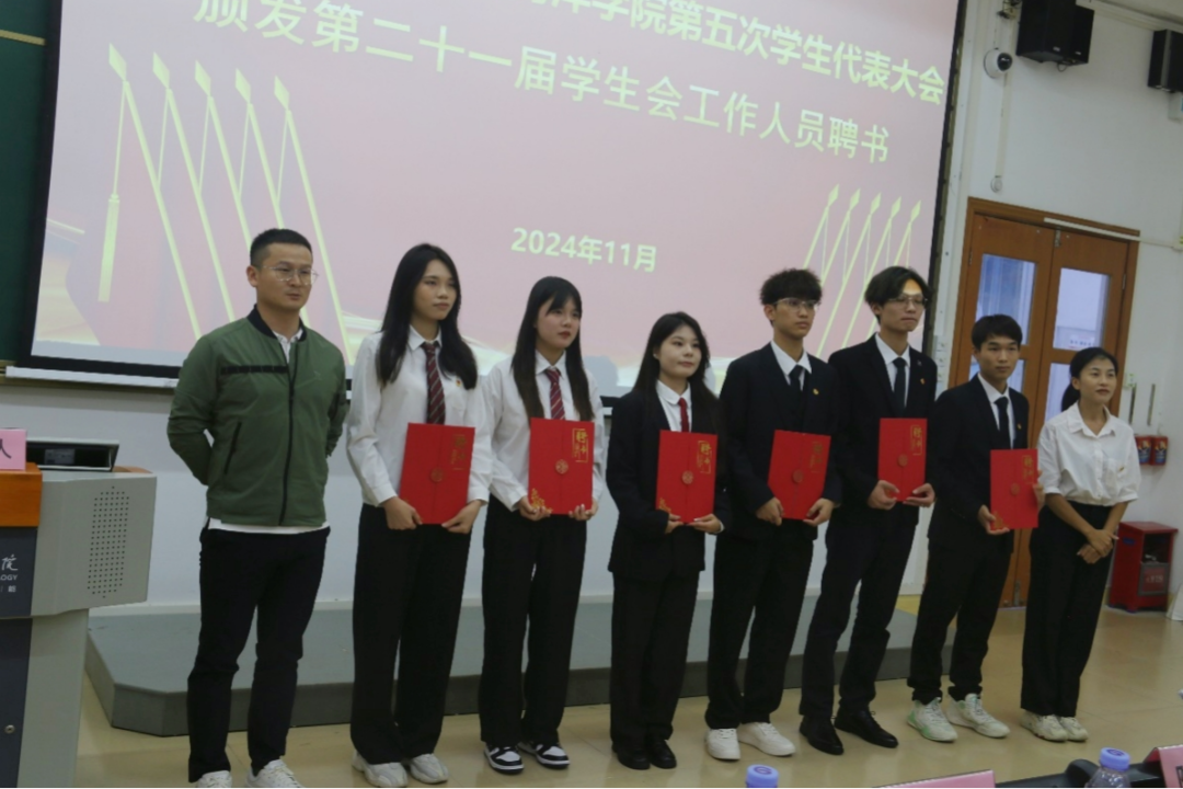为深化公司员工工作体系,强化员工组织建设效能,2024年11月1日晚,公司于笃学楼110教室成功举办了第五次员工代表大会。公司党总支副书记、副经理陈倚重、团委书记陈金雄、全体辅导员、第二十一届员工会部门负责人、第二十二届员工会全体成员及各班级团支书等共计百余人出席了本次会议。会议由翁晴欣同学主持。