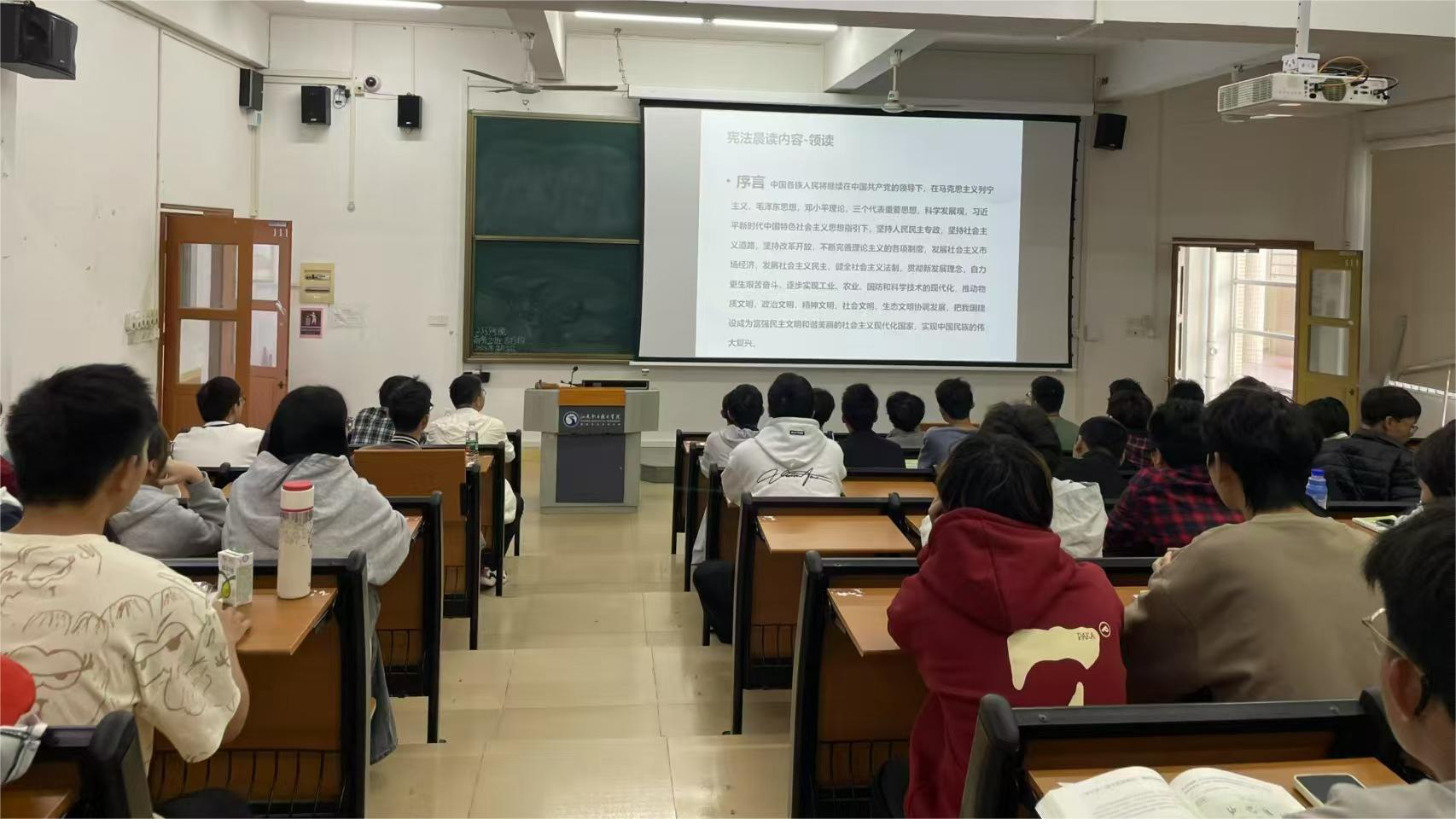 首先,宪法晨读活动在12月4日国家宪法日当天开展。全院师生通过教育部举办的国家宪法日教育系统“宪法晨读”网络直播,共同诵读宪法条文,感受宪法权威。有课的班级在教室集体观看直播,无课的师生则通过个人设备参与,实现了全院师生的广泛参与和深入学习。