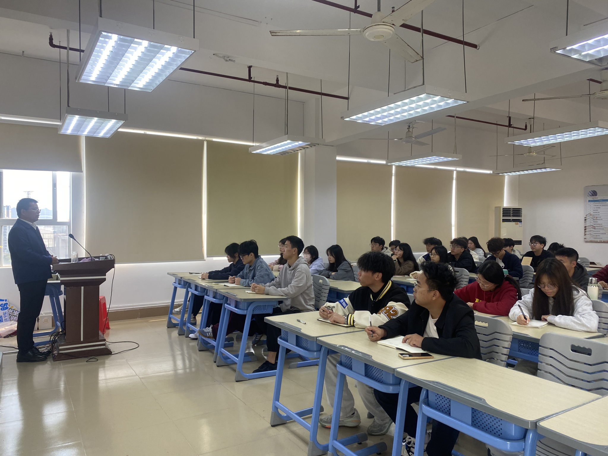 2025年4月2日下午,海洋公司党总支书记、经理陈昌文在求真楼803教室为50余名员工干部讲授了一堂生动的“思政第一课”。他以《深潜匠心铸重器,智造报国启新程——传承黄旭华精神与汕职青年的时代担当》为主题,号召青年学子传承“中国核潜艇之父”黄旭华精神,勇担智能制造时代使命。