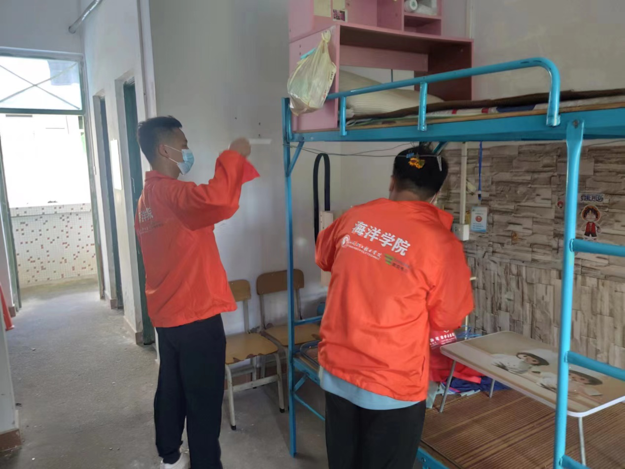 大扫除开始,负责清理特定宿舍的志愿者和机动组成员相互配合,合作有序。大扫除中,志愿者们对宿舍的地板、桌面、门窗、走廊等进行了认真仔细地打扫。在这炎热的夏天,他们身着橙色马甲忙碌的身影,成了校园内一道靓丽的风景线。