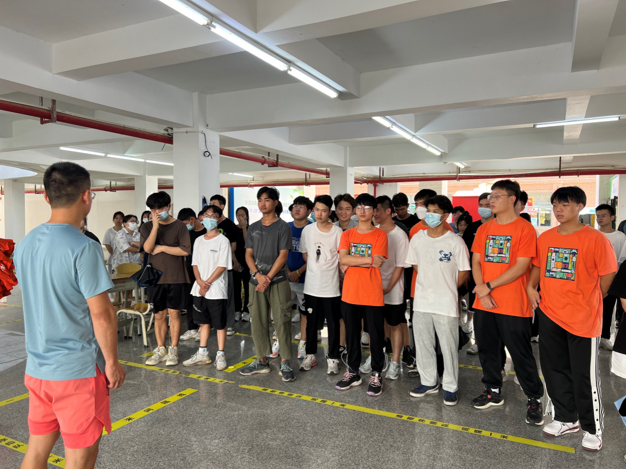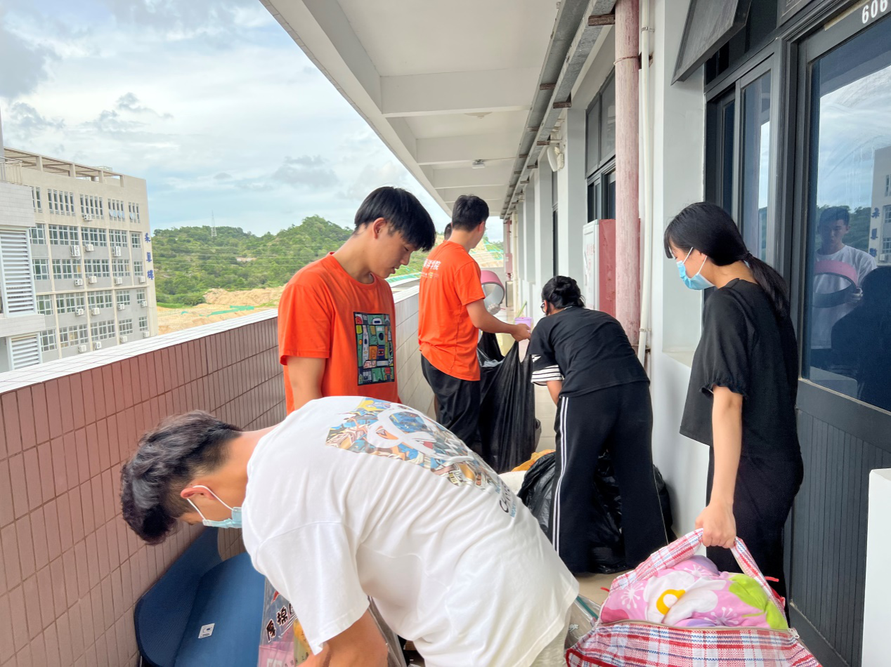 下午14:50,志愿者们在A12栋A13栋架空层集合,辅导员黄士库布置任务并叮嘱卫生打扫的相关要求。随后,志愿者们带上垃圾袋,按照分配表赶往自己负责的员工宿舍或宿舍楼栋,开始井然有序地进行宿舍卫生大扫除。