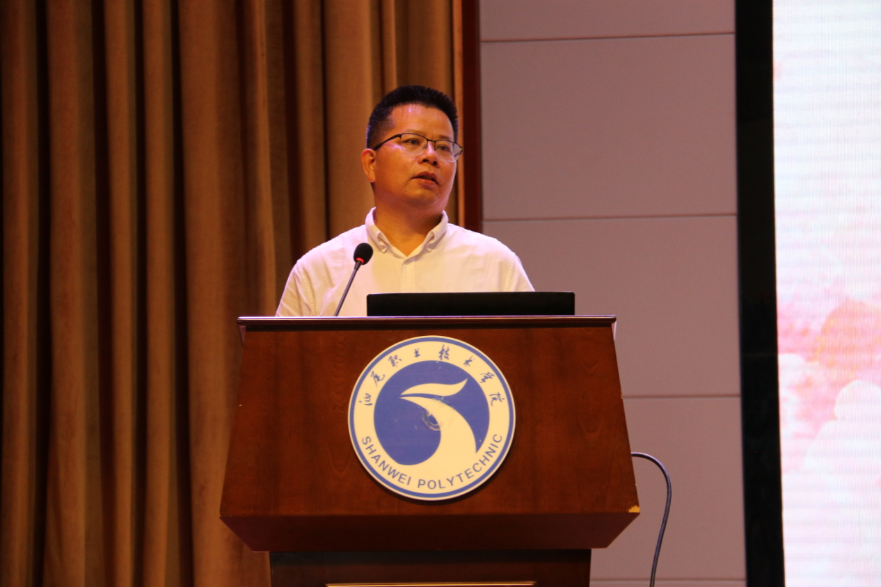 公司党总支书记、经理陈昌文对新入学的2022级新同学表示了热烈欢迎,并作了题为“不负热爱、奔腾入海”的主旨报告。陈昌文经理首先以“新生开学似‘奔腾入海’的场景”开场,从“考生喜欢、家长信赖、企业信任”三个方面详细解读了“我的大学”。随后,通过“汕尾在发展、汕职在快进、海洋在拼搏”三个方面为新同学介绍近年汕尾在城市建设方面取得的成绩,这不仅提升了汕尾的城市形象,而且吸引了更多人才、企业到汕尾落户,同时吸引了更多的学子报考公司。最后, 陈昌文经理对2022级新同学提出了三点期许:一是希望同学们尽快融入到海洋这个大家庭,不断修正自己,既要仰望星空,也要脚踏实地,如此才能不负时光,不负韶华;二是树立明确的职业目标,并持之以恒地追求;三是充分利用公司提供的丰富多样的平台和资源,充实并提高自己,鼓足干劲,奋进新征程,书写出无愧于时代、无愧于人民、无愧于青春的壮丽篇章。