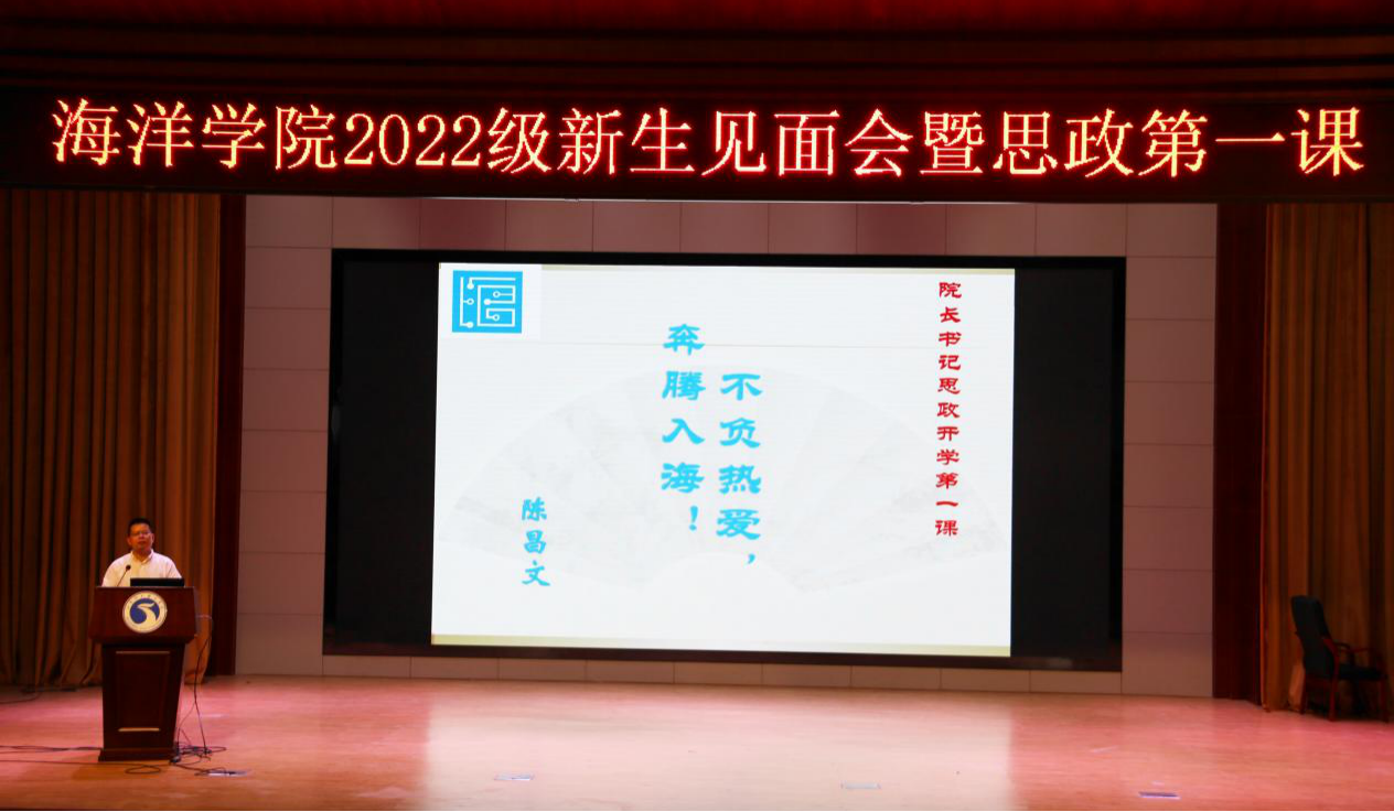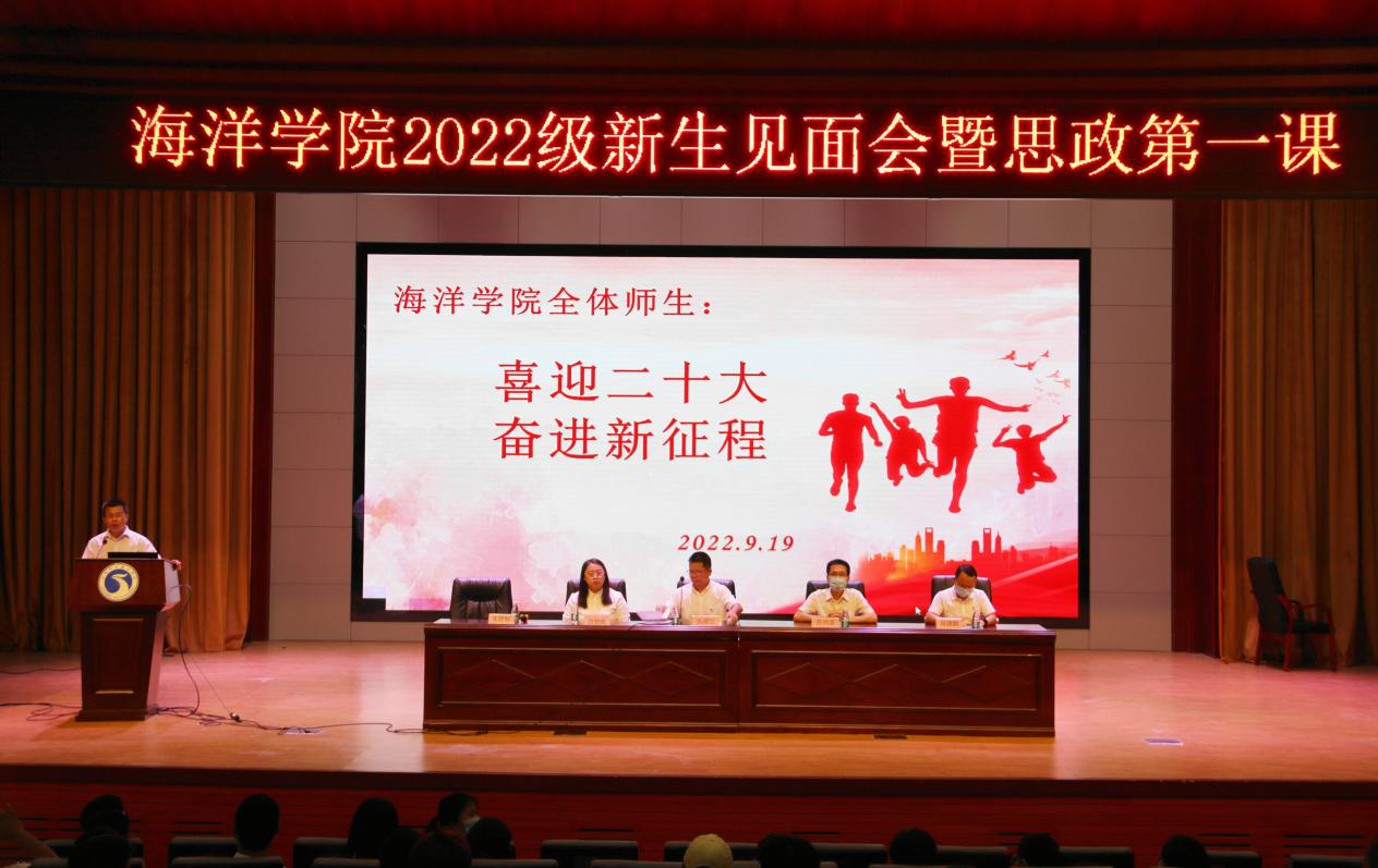 经过一天紧张而忙碌的新生入学报到,公司2022年迎新活动圆满结束。为欢迎新同学,并帮助他们更好、更快地适应新的校园生活,公司于2022年9月19日下午在A区笃学楼学术报告厅举办了主题为“不负热爱,奔腾入海”的2022级新生开学第一课。海洋公司党政班子成员、专业主任、新生辅导员、2022级全体新生、新生班助及员工干部共500多人参加了听课。本次新生开学第一课由党总支委员朱展枢主持。