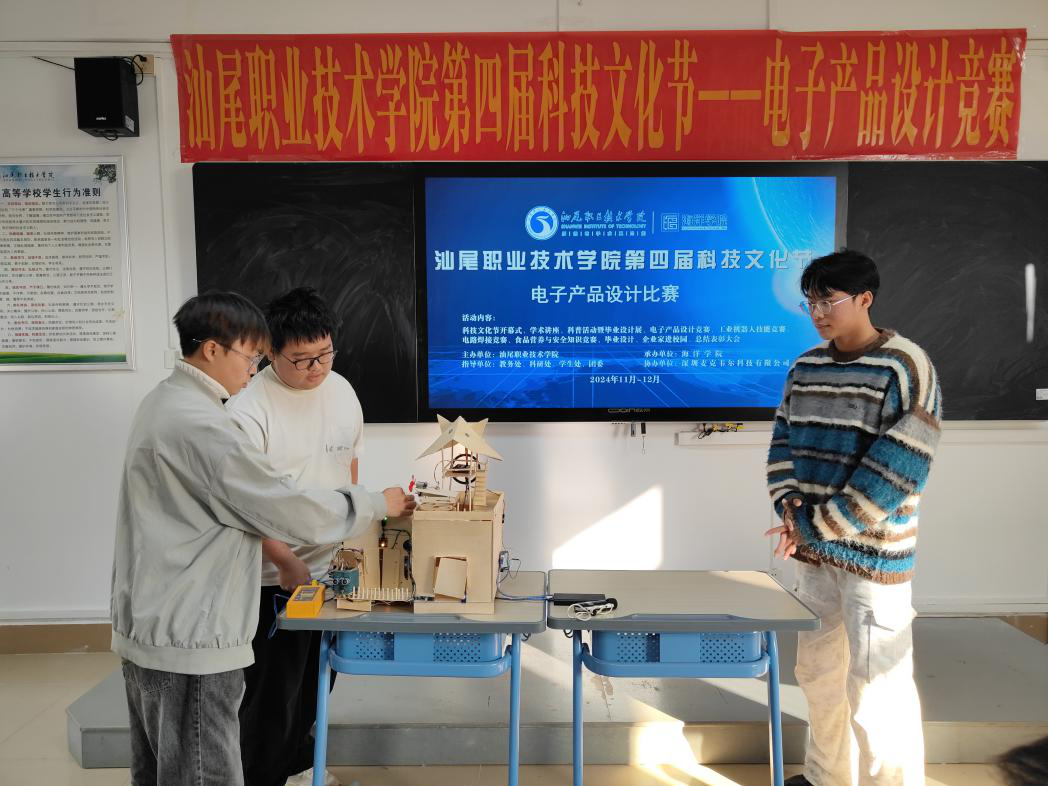为营造良好校园文化氛围,丰富公司老员工第二课堂文化生活,增强员工自主创新精神,激发员工对科技知识的学习兴趣,全面提升老员工综合素质,公司开展太阳成集团tyc33455cc第四届科技文化节——电子产品设计竞赛,决赛于12月18日在求真楼803举行。此次比赛由公司主办,太阳成集团tyc33455cc承办,并由教务处、科研处、员工处、团委、深圳麦克韦尔科技有限公司同协办、指导。