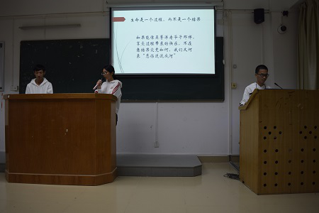此次辩论赛各班代表派出一名主辩手和两名副辩手,围绕主题演示幻灯片并讨论辨析,现场可以看到各位辩手引经据典巧妙回答质疑言论,评委席老师不时提出自己的观点,辩手亦不甘示弱据理力争,现场的氛围一度“剑拔弩张”,火热非凡。